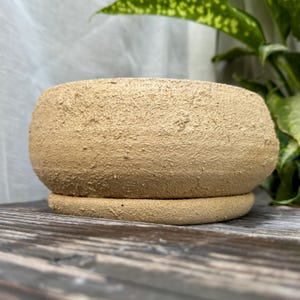 Medium size wheel thrown planter made from stoneware clay with drainage tray. Rustic textured look. Ideal for houseplants, succulents, or herbs.